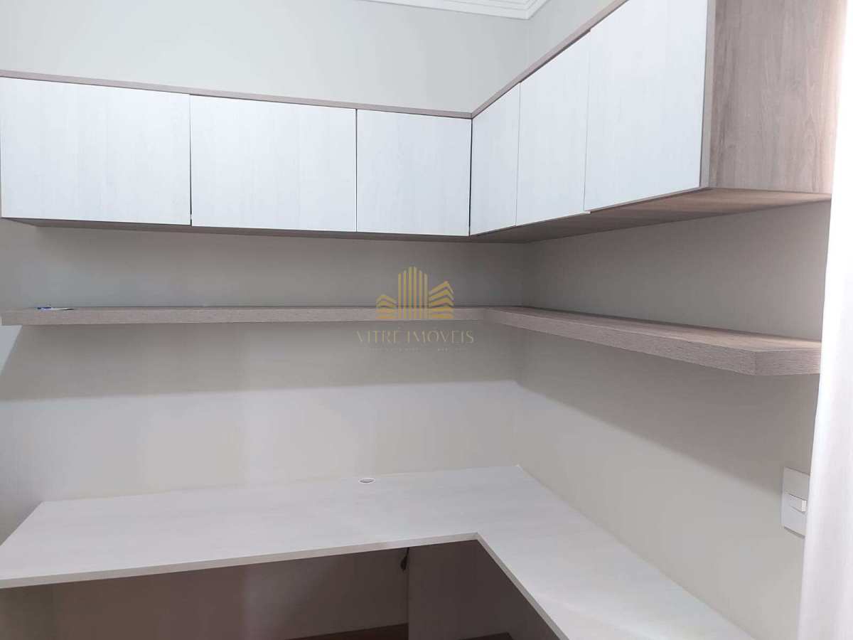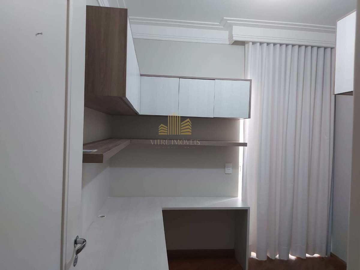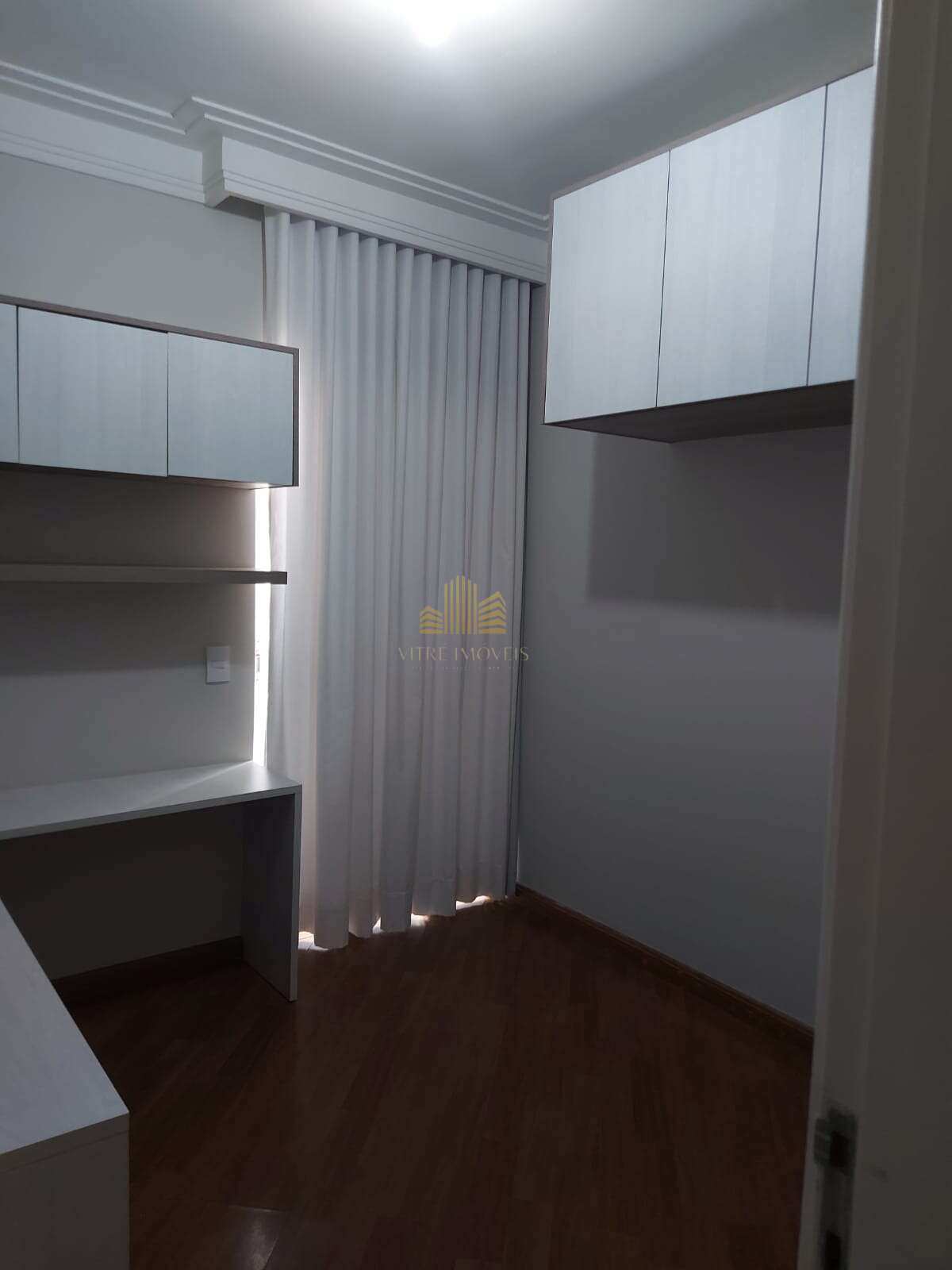 - Dormitório 1 (escritório reversível): armários planejados, mesa de trabalho, cortina e black-out — pode ser facilmente adaptado como quarto de solteiro