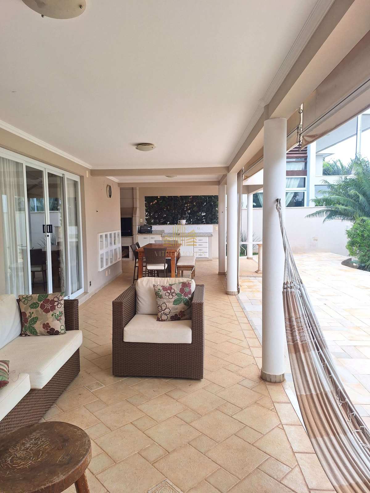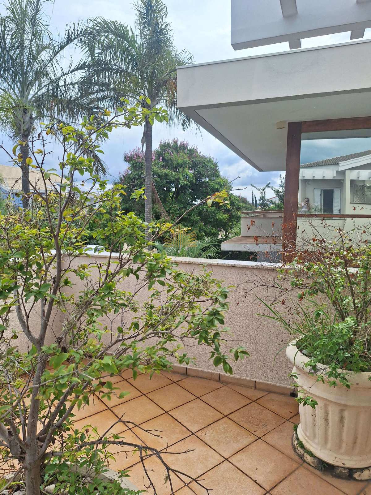 A varanda charmosa completa o cenário ideal para momentos de descanso, leitura ou encontros especiais ao pôr do sol, em um ambiente que transmite paz, exclusividade e qualidade de vida.