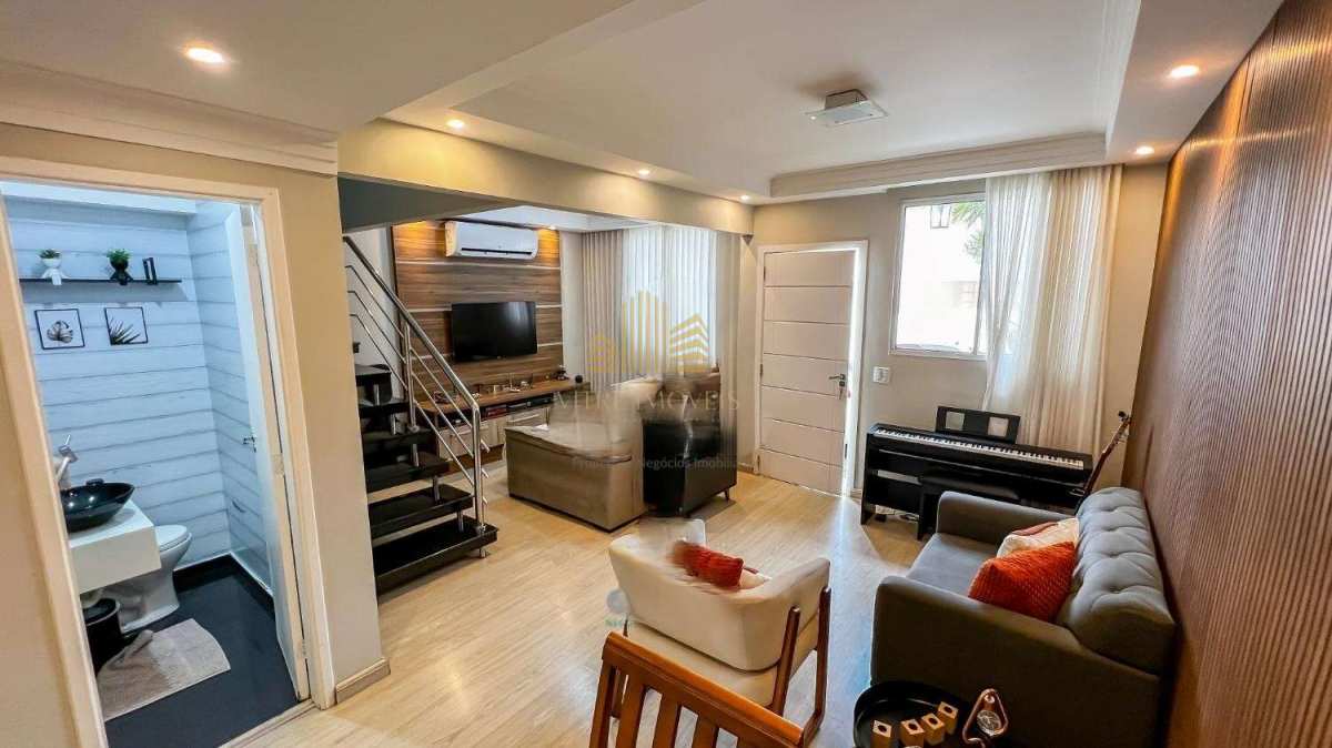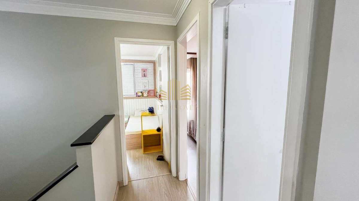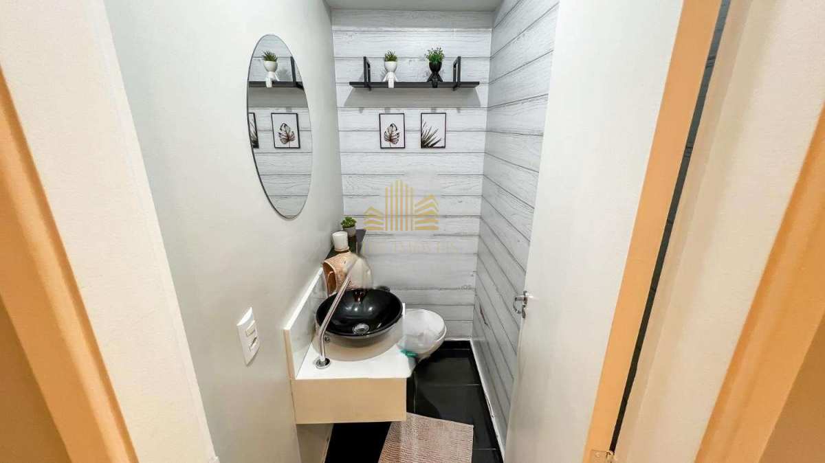 Com acabamentos em laminado, mármore e porcelanato, a casa ainda conta com armários planejados em diversos cômodos.