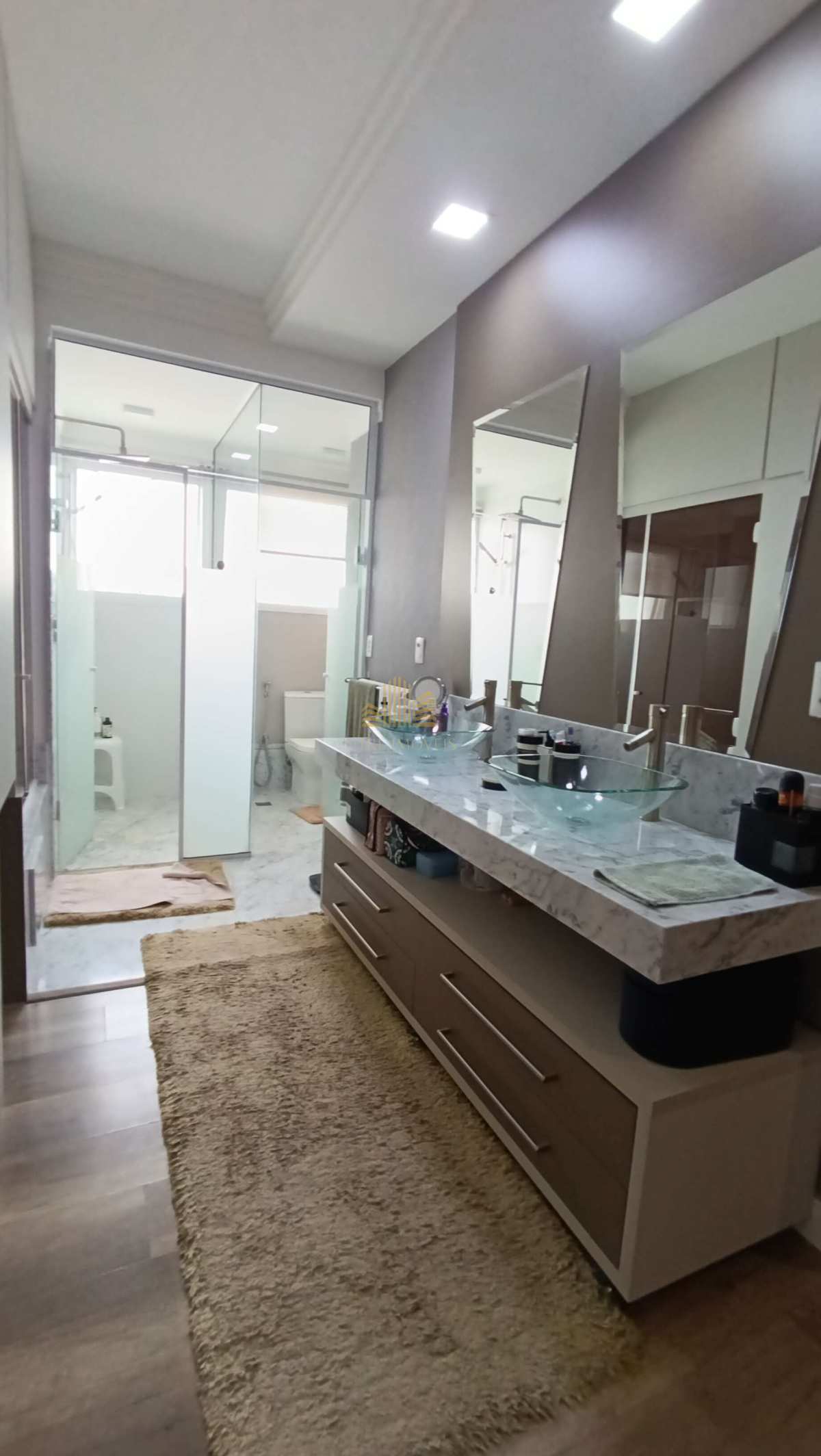 O design contemporâneo, com ambientes amplos e totalmente integrados, proporciona fluidez, iluminação natural e uma sensação constante de bem-estar. O acabamento é simplesmente impecável: mármore italiano em placas de 1x1 metro em toda a casa, refletindo requinte, durabilidade e atemporalidade.